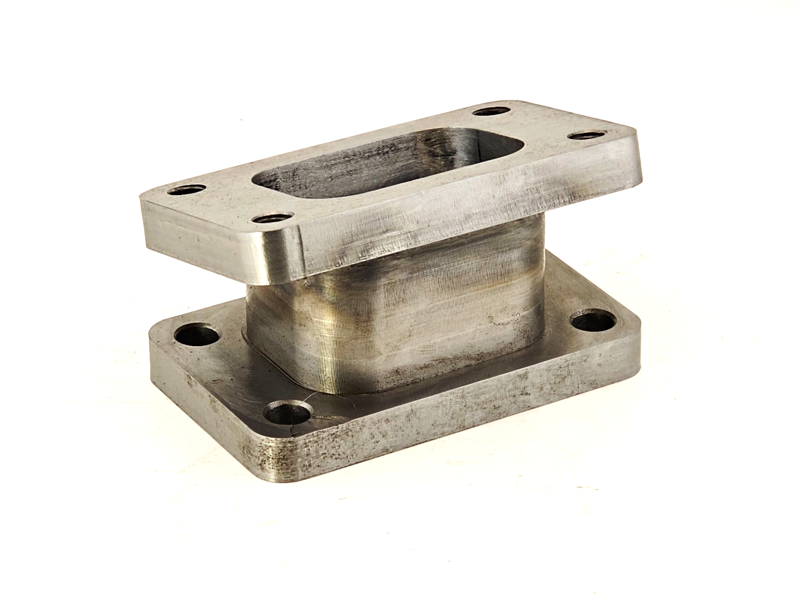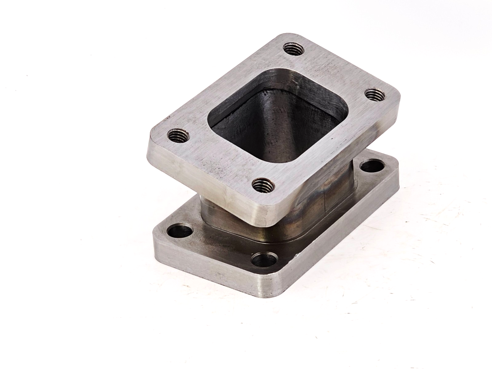 15 Deg T3 Turbo Flange Spacer 2.0″ Tall Billet Riser Undivided Inlet CNC T3/T4