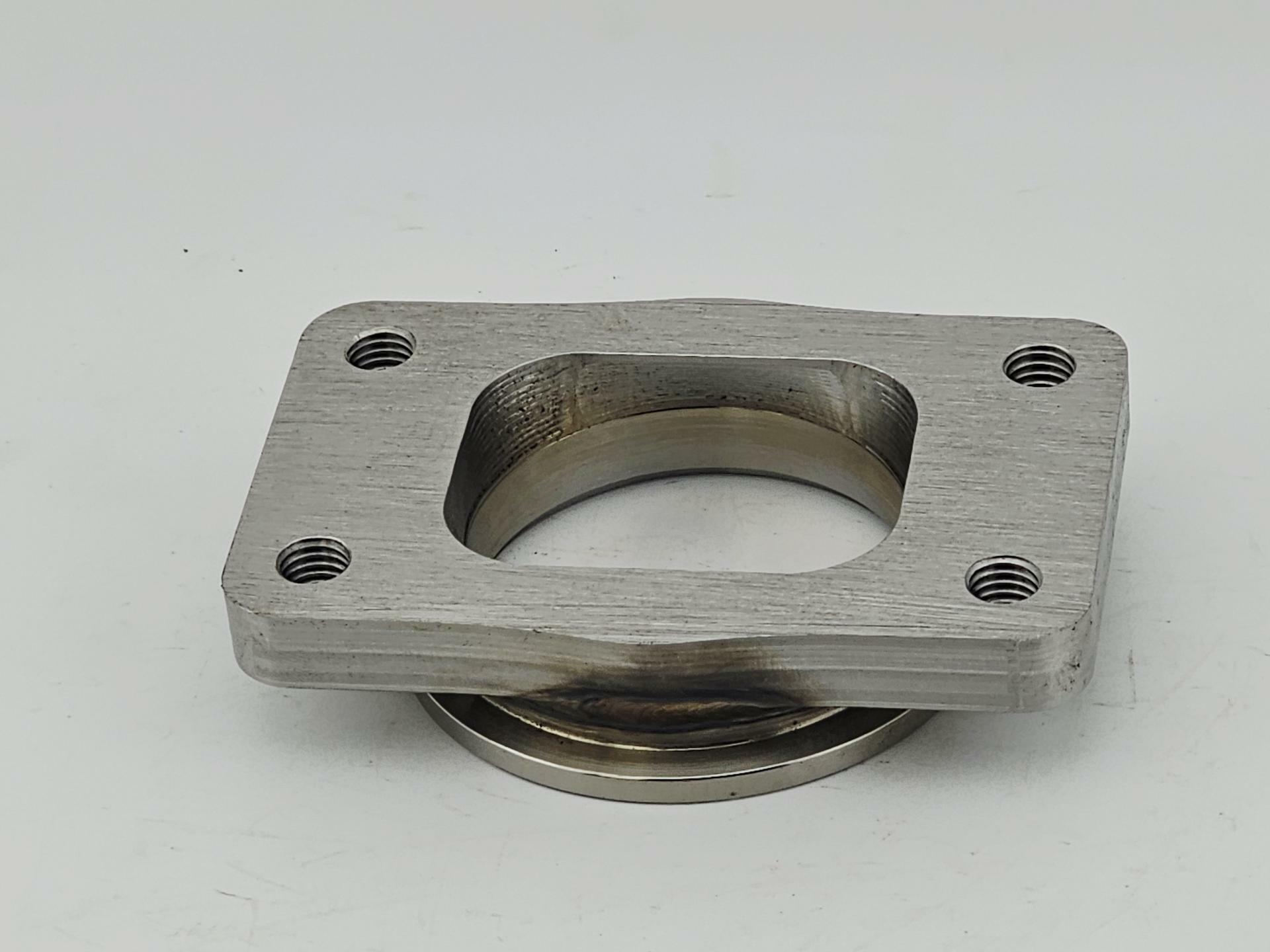 All our products are CNC milled using the latest CAD/CAM programs which are built in house on 3 and 4 axis high precision machinery. We offer the billet flanges in custom thickness and even custom application transitions for easier fab work or building your own DIY kits. We guarantee our products and service if you are not satisfied return the product and receive the purchase price refund. We machine out adapters and flanges with the industry standards by using USA certified materials to resist warping and provides excellent weldabilty. The turbo adapters’ ports are all ballmilled to improve flow smoothly from one port shape to the other reducing resistance andturbulence. Wealsoeven go the extra distance to sand down the machine waves using a hatch cross pattern to improve sealing.