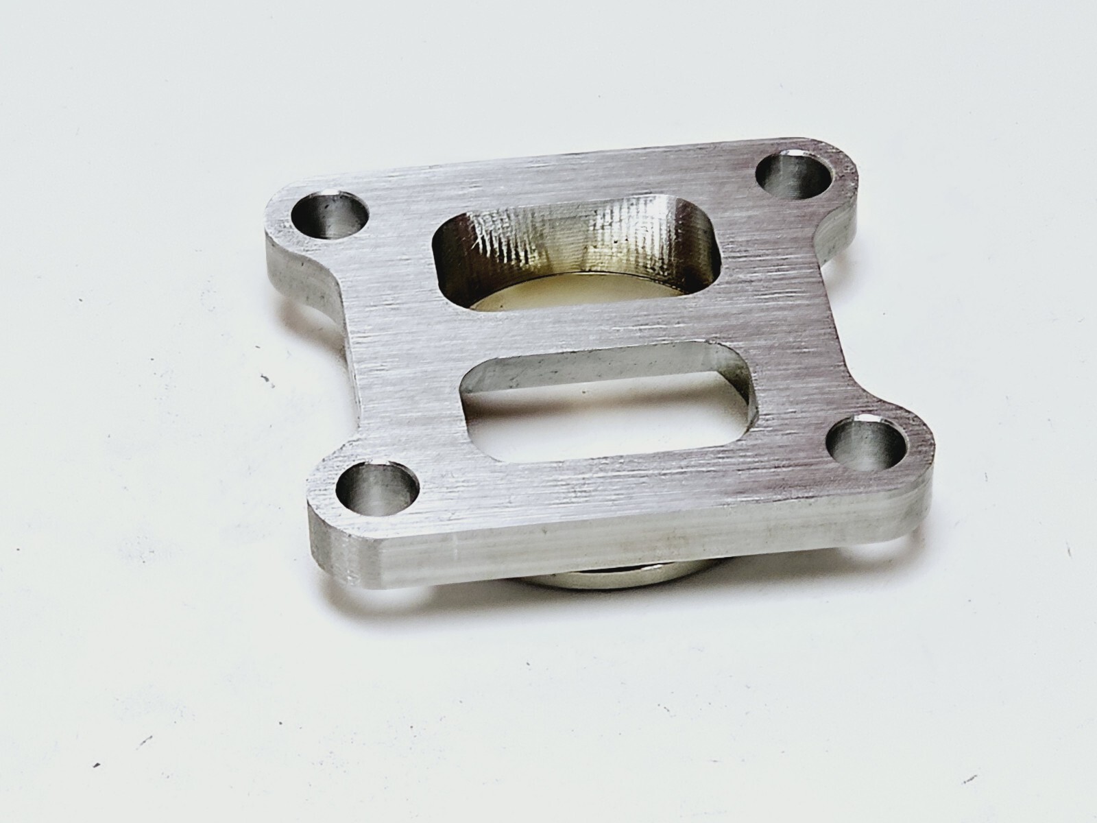 All our products are CNC milled using the latest CAD/CAM programs which are built in house on 3 and 4 axis high precision machinery. We offer the billet flanges in custom thickness and even custom application transitions for easier fab work or building your own DIY kits. We guarantee our products and service if you are not satisfied return the product and receive the purchase price refund. We machine out adapters and flanges with the industry standards by using USA certified materials to resist warping and provides excellent weldabilty. The turbo adapters’ ports are all ballmilled to improve flow smoothly from one port shape to the other reducing resistance andturbulence. Wealsoeven go the extra distance to sand down the machine waves using a hatch cross pattern to improve sealing.