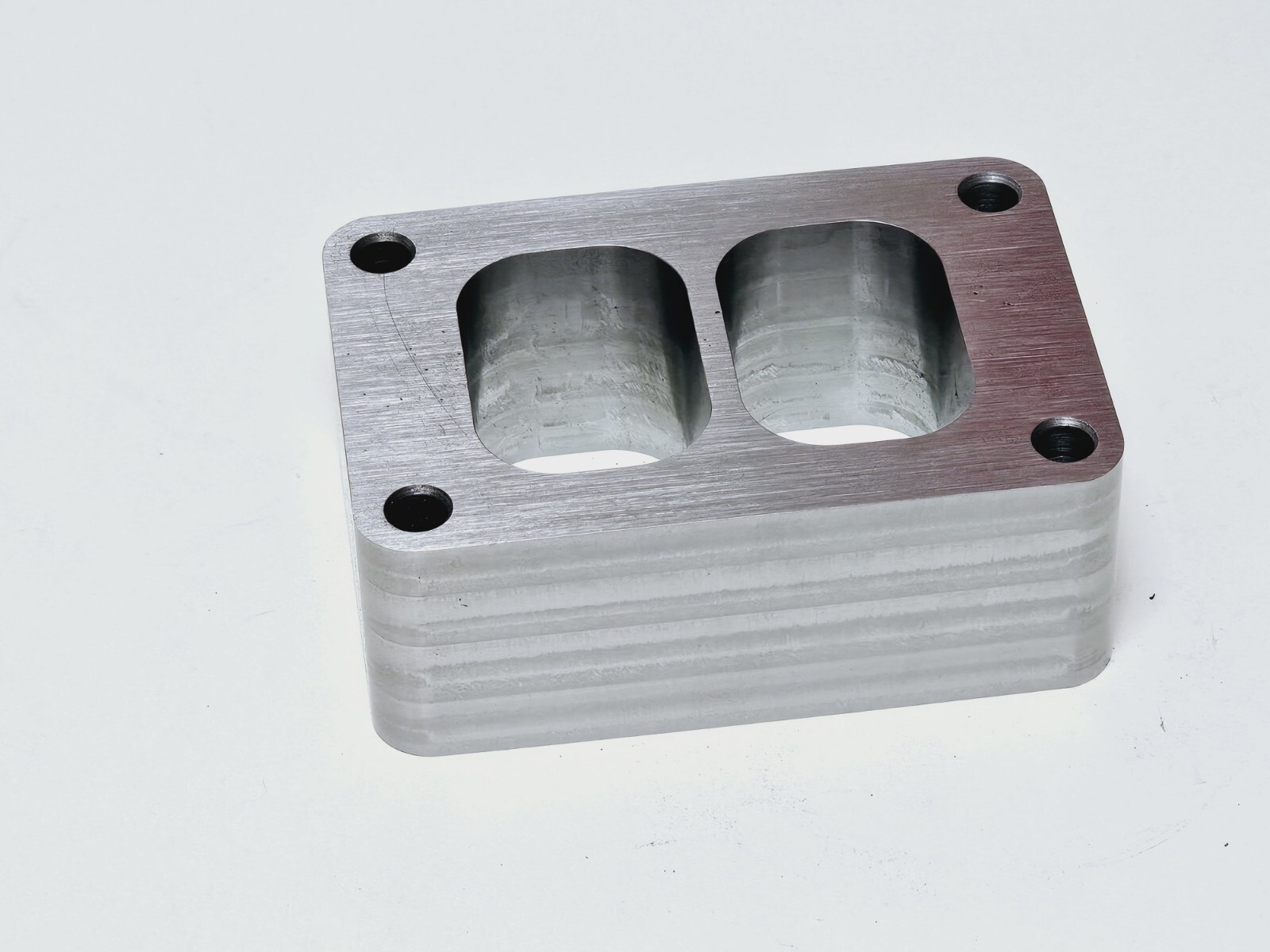All our products are CNC milled using the latest CAD/CAM programs which are built in house on 3 and 4 axis high precision machinery. We offer the billet flanges in custom thickness and even custom application transitions for easier fab work or building your own DIY kits. We guarantee our products and service if you are not satisfied return the product and receive the purchase price refund. We machine out adapters and flanges with the industry standards by using USA certified materials to resist warping and provides excellent weldabilty. The turbo adapters’ ports are all ballmilled to improve flow smoothly from one port shape to the other reducing resistance and turbulence. We also even go the extra distance to sand down the machine waves using a hatch cross pattern to improve sealing.